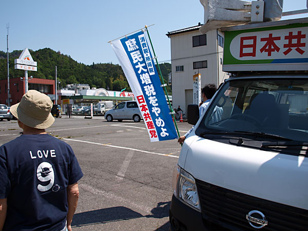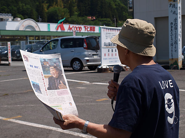 宣伝カーで走行中、すれ違う車から手を振ってくれたり、交通整理をしていた警備会社の人が「がんばれ」と声をかけてくれたり、元気付けられる宣伝になりました。