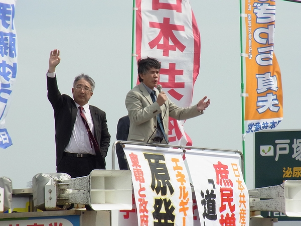 はぎわら貞夫氏が伊藤ゆうじ県議と一緒に、群馬4区の地域内を宣伝カーで回り、街頭演説を行いました。